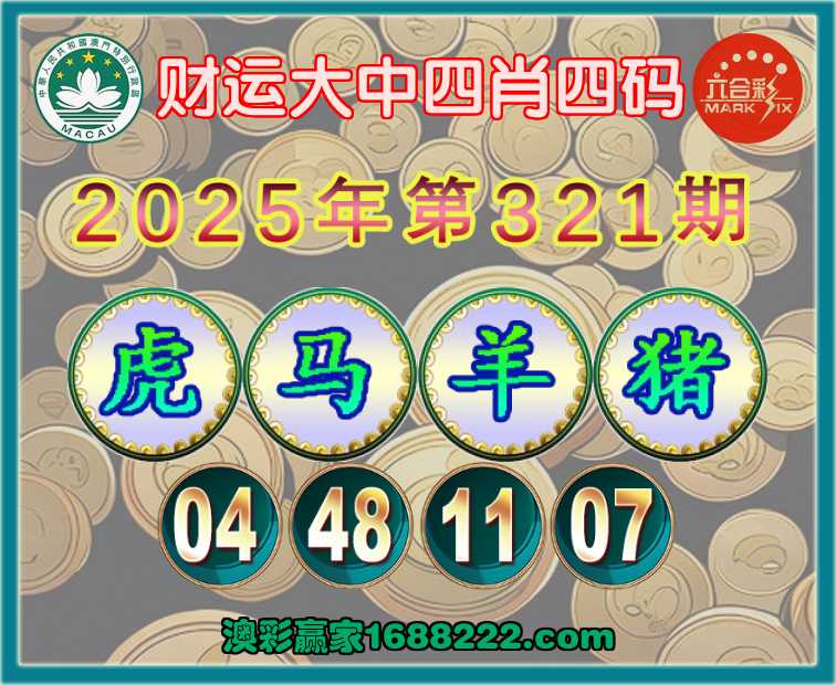 321期:《财运大中》 🥽四肖四码🥽【虎马羊猪】【04.48.11.07】开:羊23准