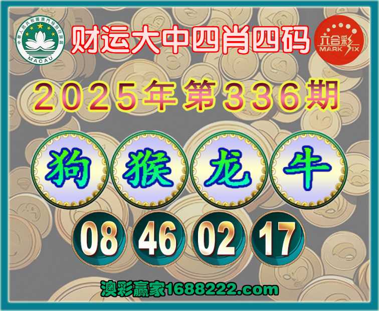 336期:《财运大中》 🥽四肖四码🥽【狗猴龙牛】【08.46.02.17】开:牛17准