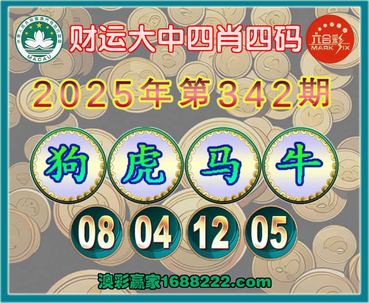 342期:《财运大中》 🥽四肖四码🥽【狗虎马牛】【08.04.12.05】开:虎04准
