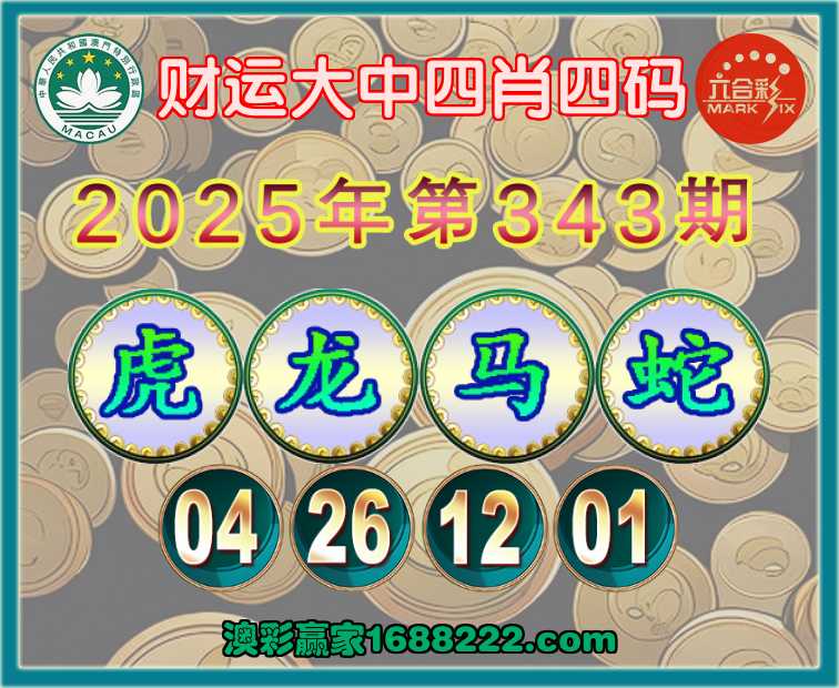 343期:《财运大中》 🥽四肖四码🥽【虎龙马蛇】【04.26.12.01】开:龙38准